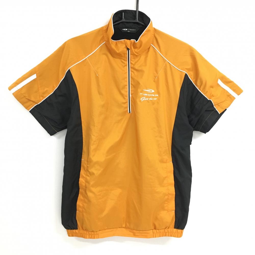【美品】ティゴラ 半袖ブルゾン オレンジ×黒 裏地微起毛 ハーフジップ 背面刺しゅう メンズ L ゴルフウェア TIGORA
