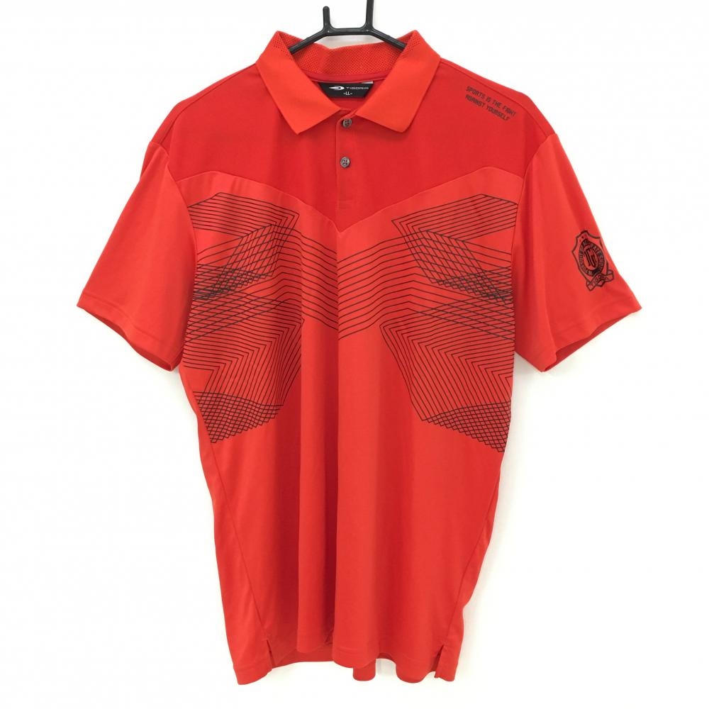 ティゴラ 半袖ポロシャツ レッド×白 ボーダー メッシュ地 ハーフジップ メンズ LL ゴルフウェア TIGORA