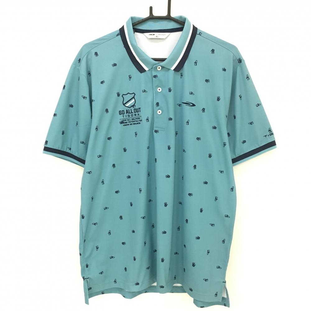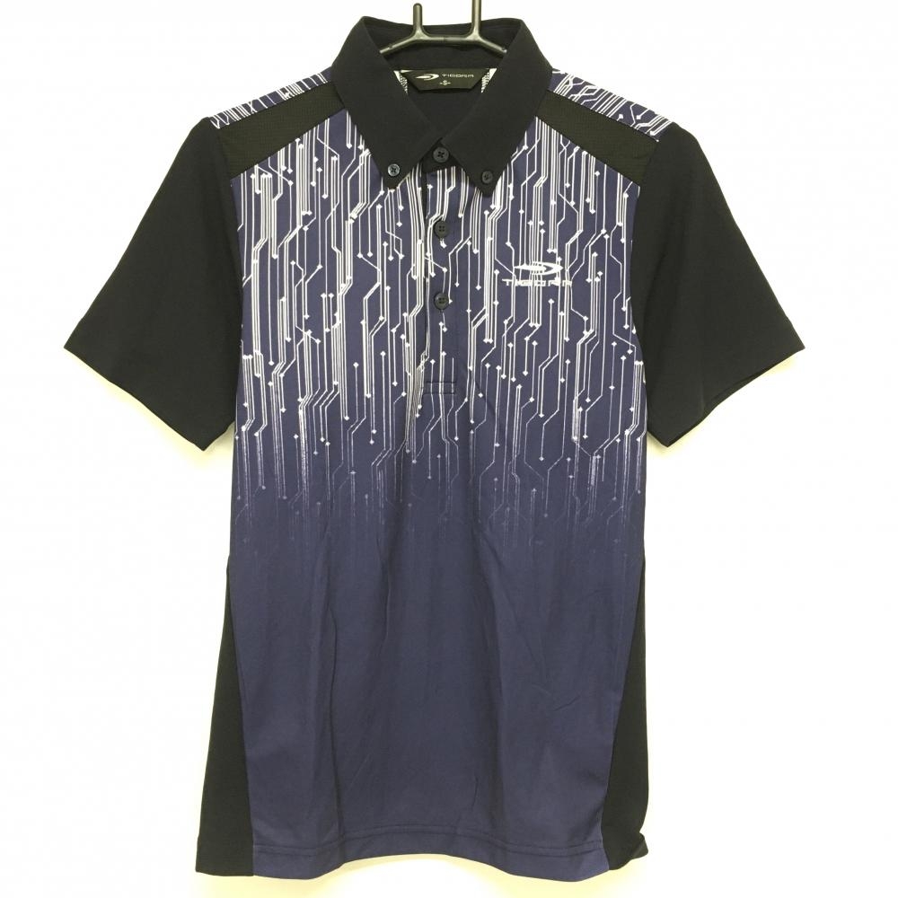 【超美品】ティゴラ 半袖ポロシャツ ネイビー×パープル 前上部総柄 メンズ S ゴルフウェア TIGORA