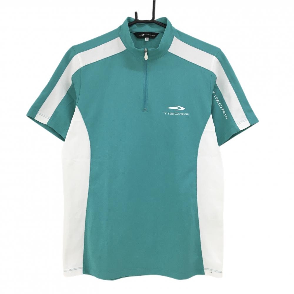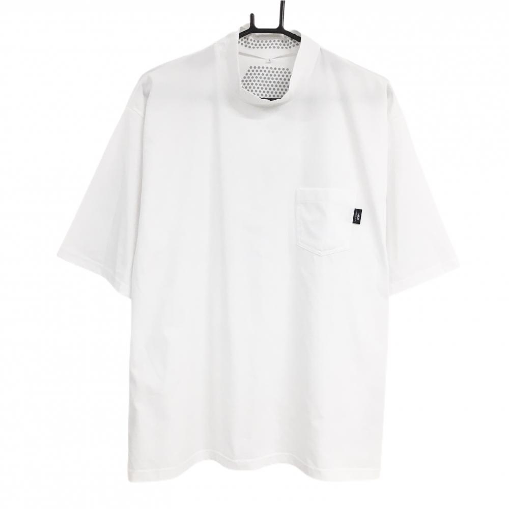 【超美品】ティゴラ 半袖シャツ 白 襟ハイネック 胸ポケット 速乾生地 メンズ L ゴルフウェア TIGORA