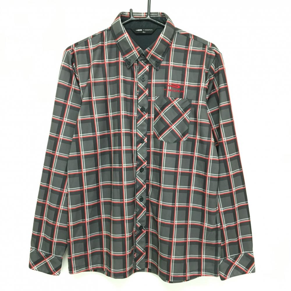 ティゴラ 長袖シャツ グレー×レッド チェック ボタンダウン メンズ L ゴルフウェア TIGORA