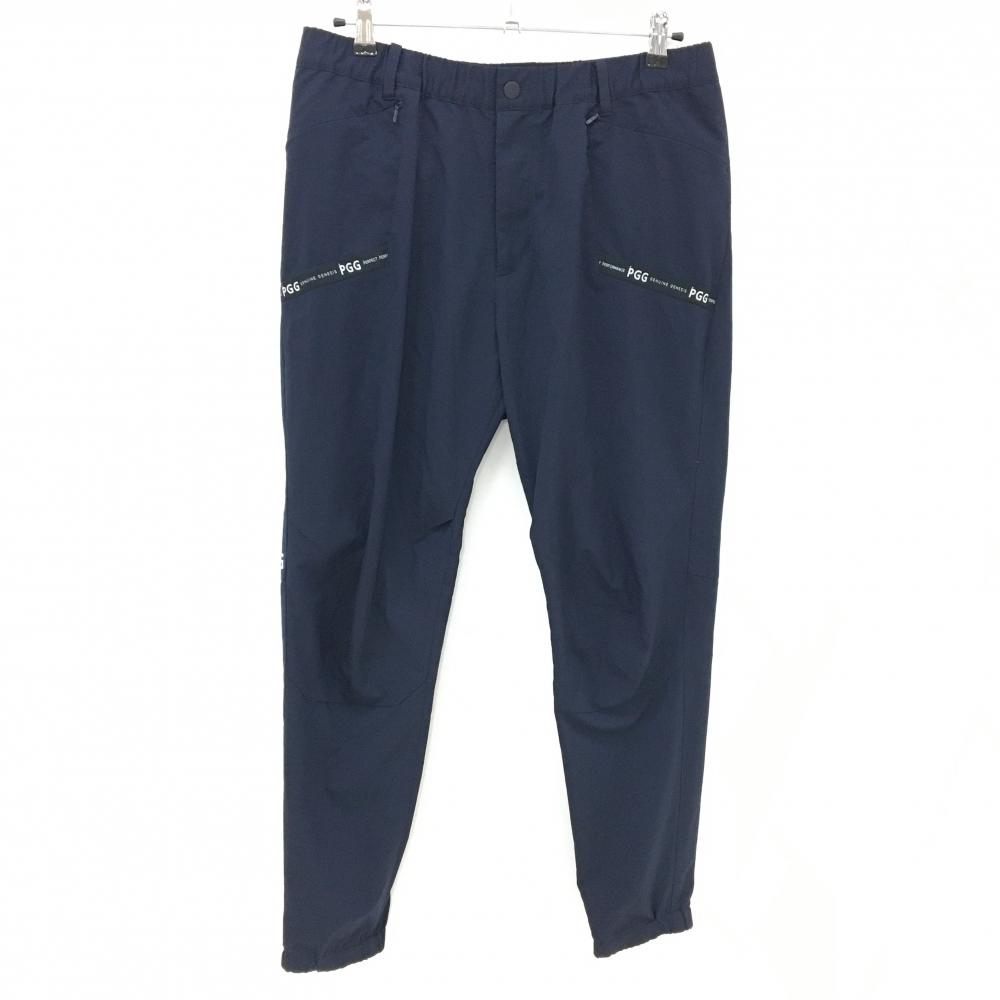【超美品】パーリーゲイツ パンツ ネイビー ロゴレッド 織生地 ストレッチ メンズ 6(XL) ゴルフウェア PEARLY GATES