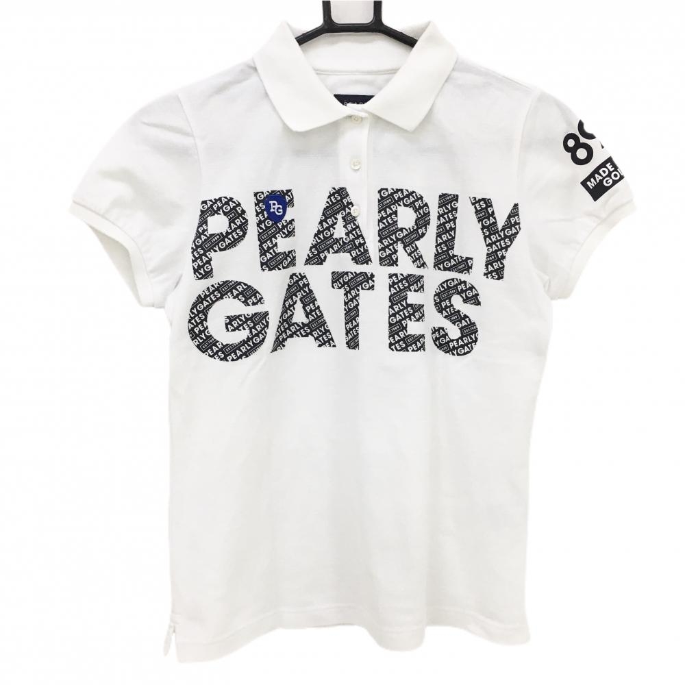 【超美品】パーリーゲイツ パンツ 白×黒 ロゴ総柄 ストレッチ レディース 00(XS) ゴルフウェア PEARLY GATES