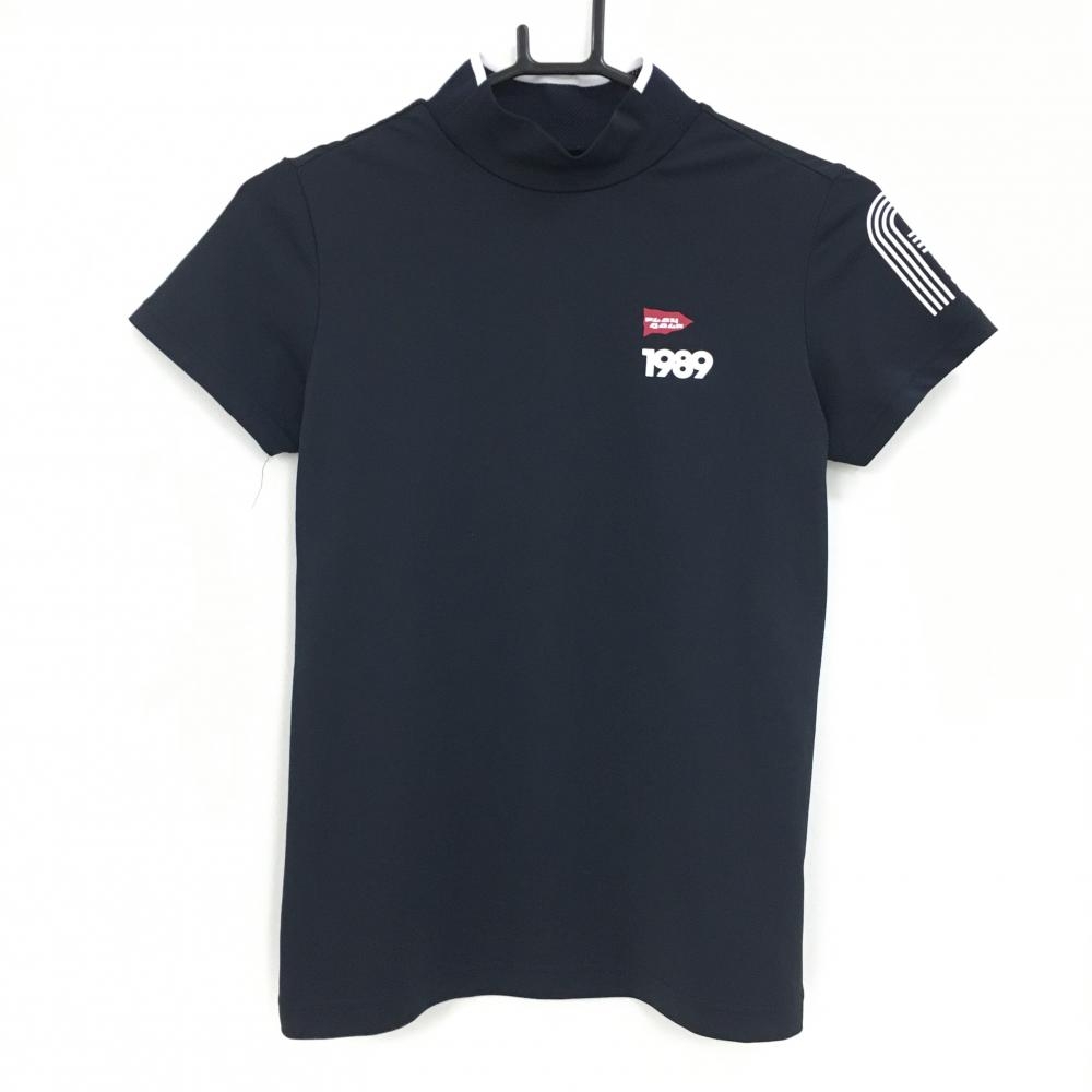 【新品】パーリーゲイツ ハイネックインナーシャツ ネイビー×白 袖ロゴ 吸水速乾 接触冷感 レディース 1(M) ゴルフウェア PEARLY GATES