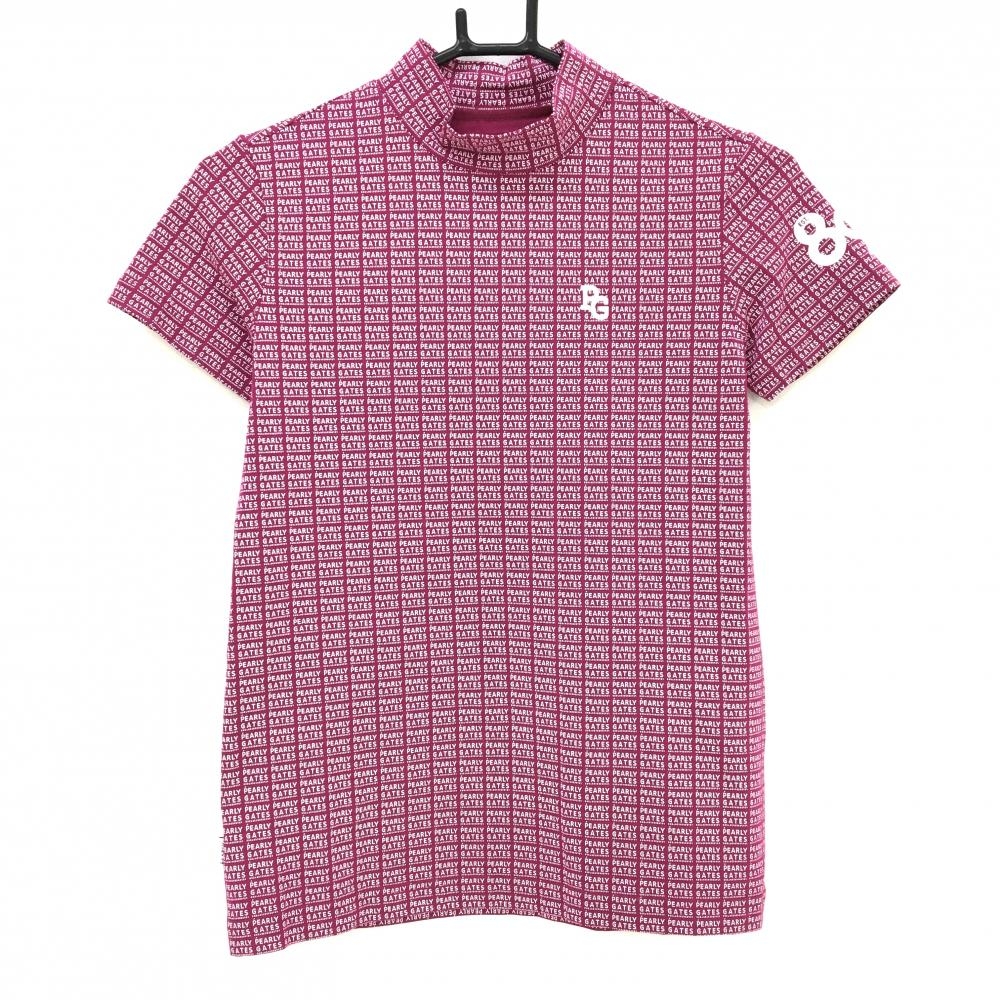 パーリーゲイツ ハイネックセーター ライトピンク×グレー ハーフジップ 後ろロゴ ニット レディース 1(M) ゴルフウェア PEARLY GATES