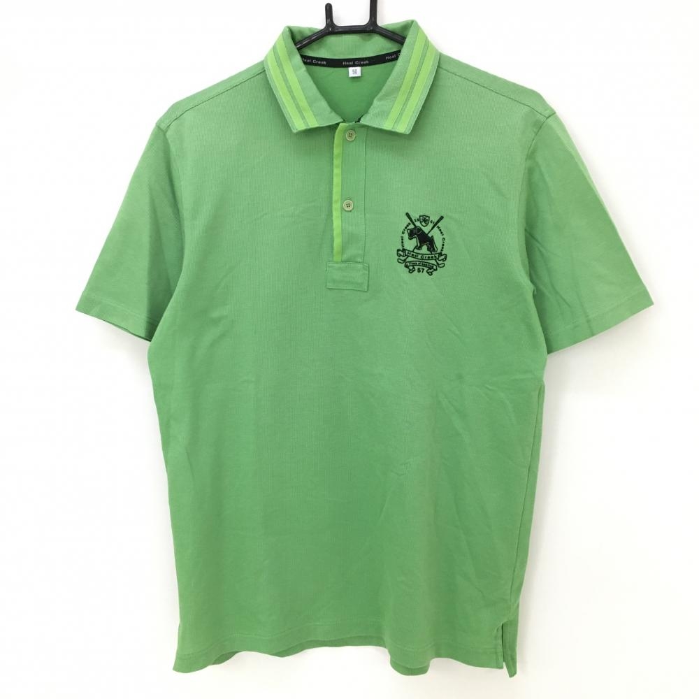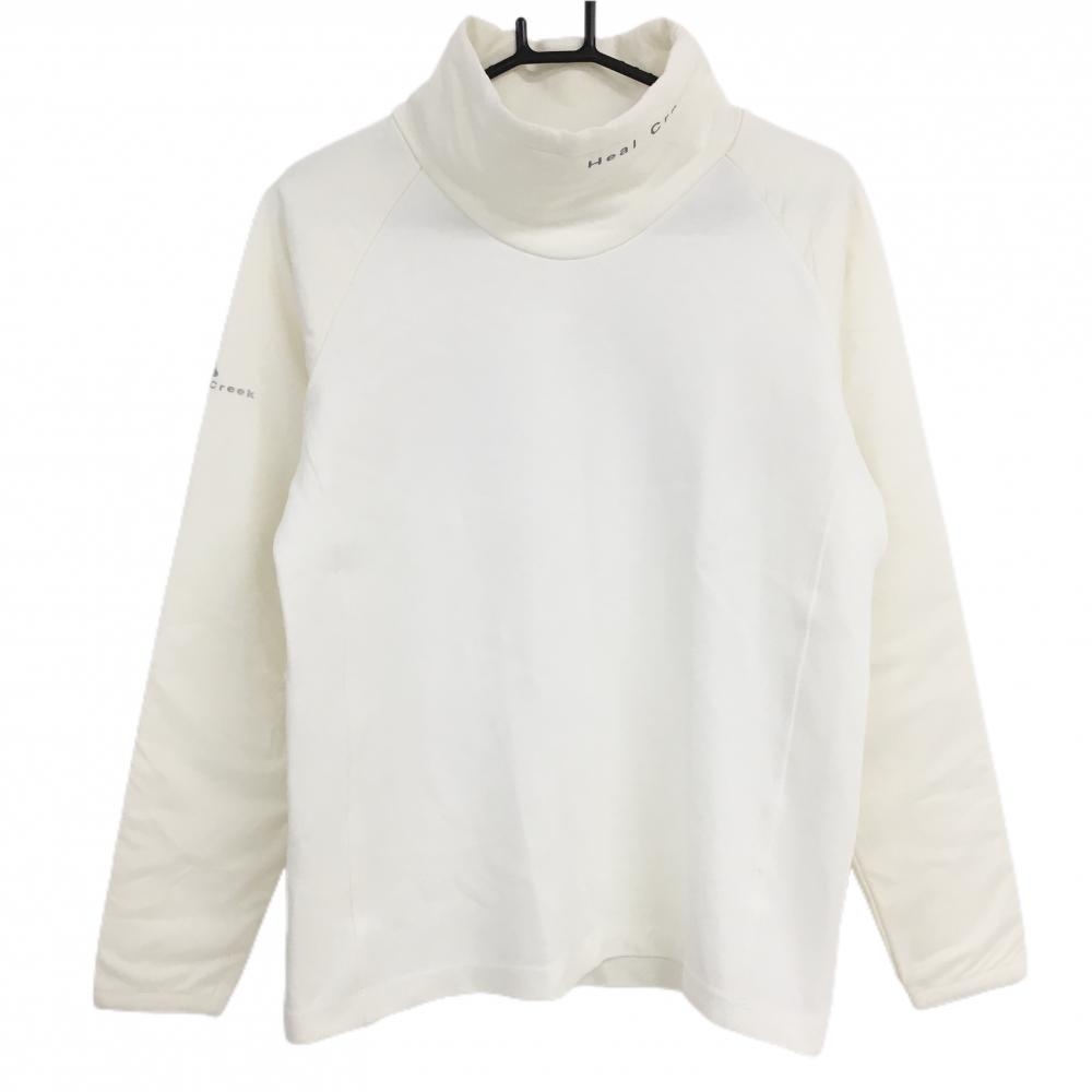【美品】ヒールクリーク 半袖ポロシャツ アイボリー 一部サイドボーダー ロゴプリント レディース 42(L) ゴルフウェア Heal Creek