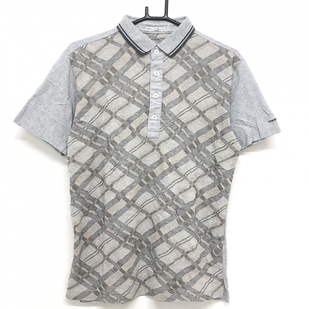 【超美品】ムニタルプ 半袖ポロシャツ ライトグレー×白 ヒールクリーク ハーフジップ レディース 42(L) ゴルフウェア Heal Creek