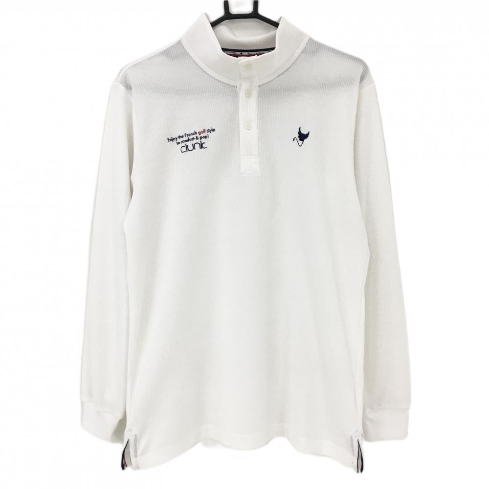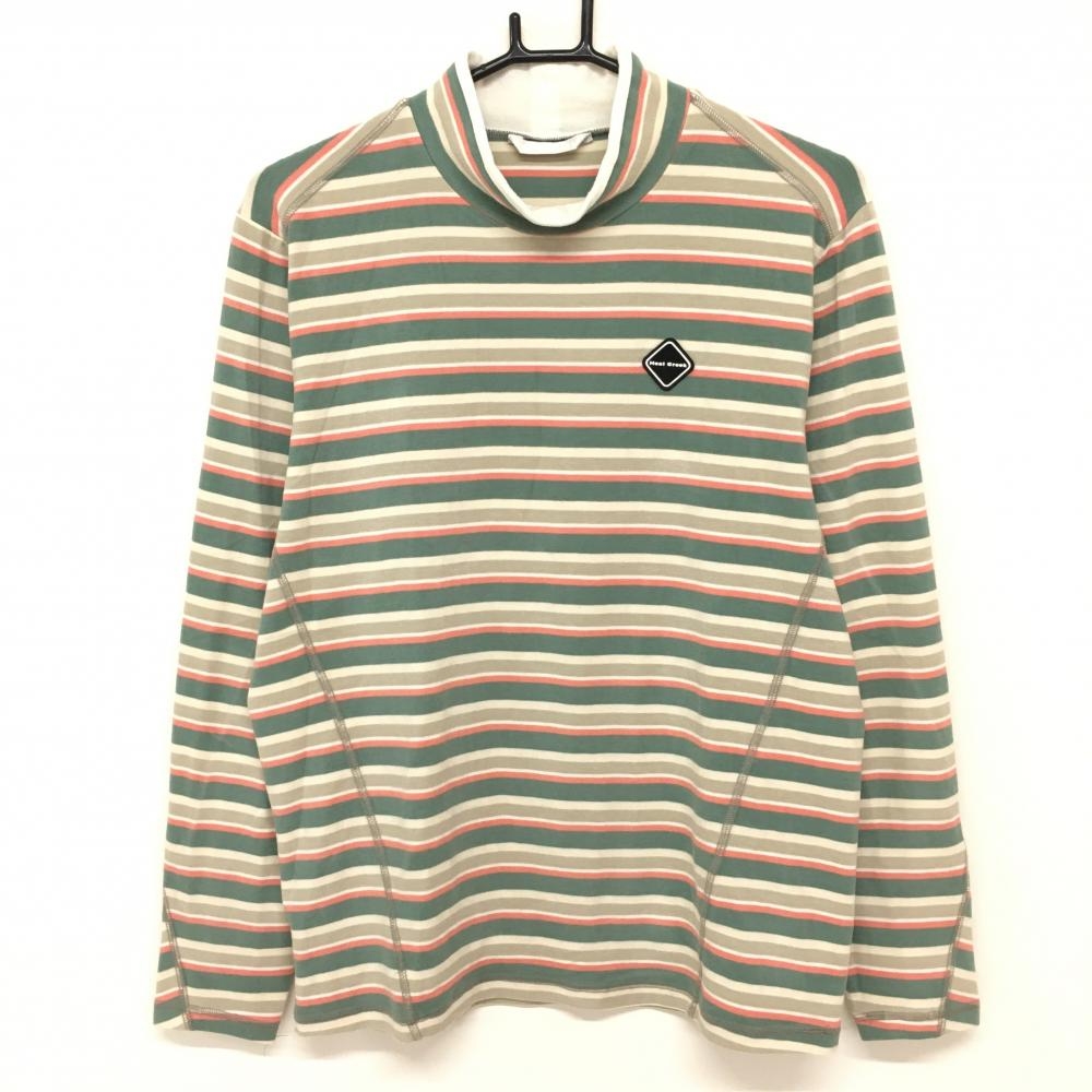 【超美品】ヒールクリーク 長袖ハイネックシャツ 白×ライトグリーン ボーダー インナー メンズ 48(M) ゴルフウェア Heal Creek