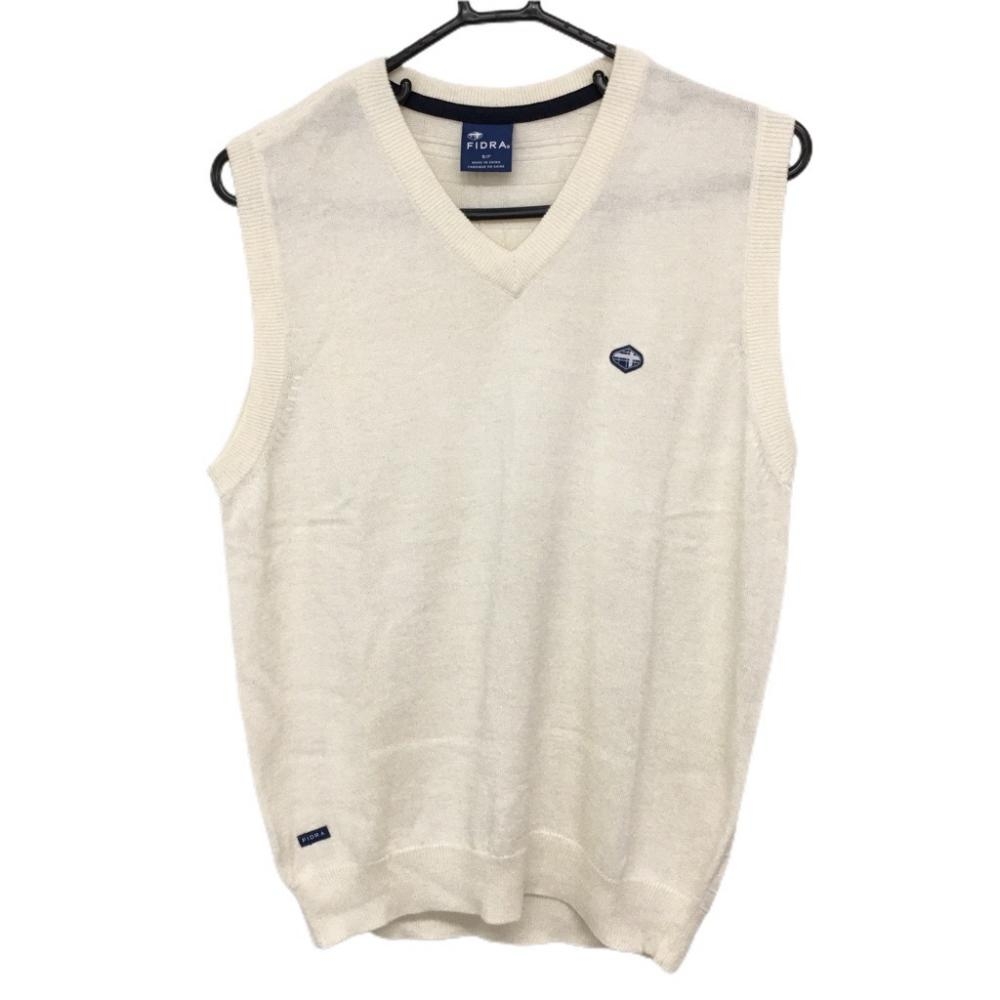 【美品】フィドラ ニットベスト アイボリー Vネック ロゴワッペン 背面格子柄 アンゴラ混 メンズ S/P ゴルフウェア FIDRA