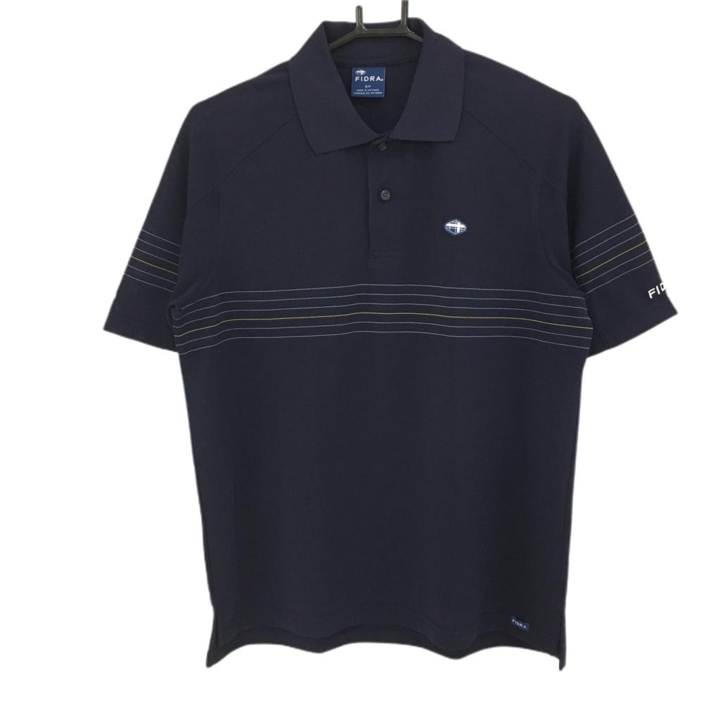 【美品】フィドラ 半袖ポロシャツ ネイビー×ダークネイビー 総柄 胸元ワッペン レディース M ゴルフウェア FIDRA