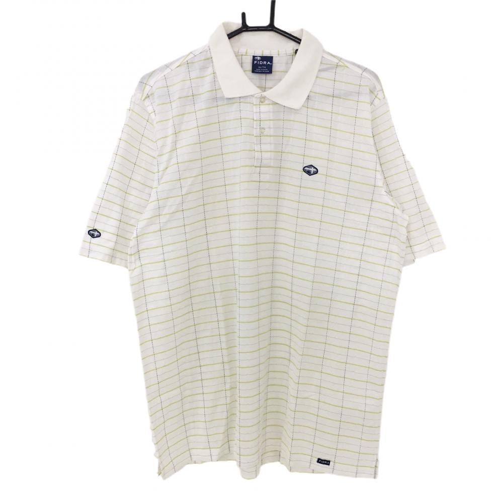 【超美品】フィドラ 半袖ハイネックシャツ 白 格子柄地模様 ロゴワッペン レディース S/P ゴルフウェア FIDRA