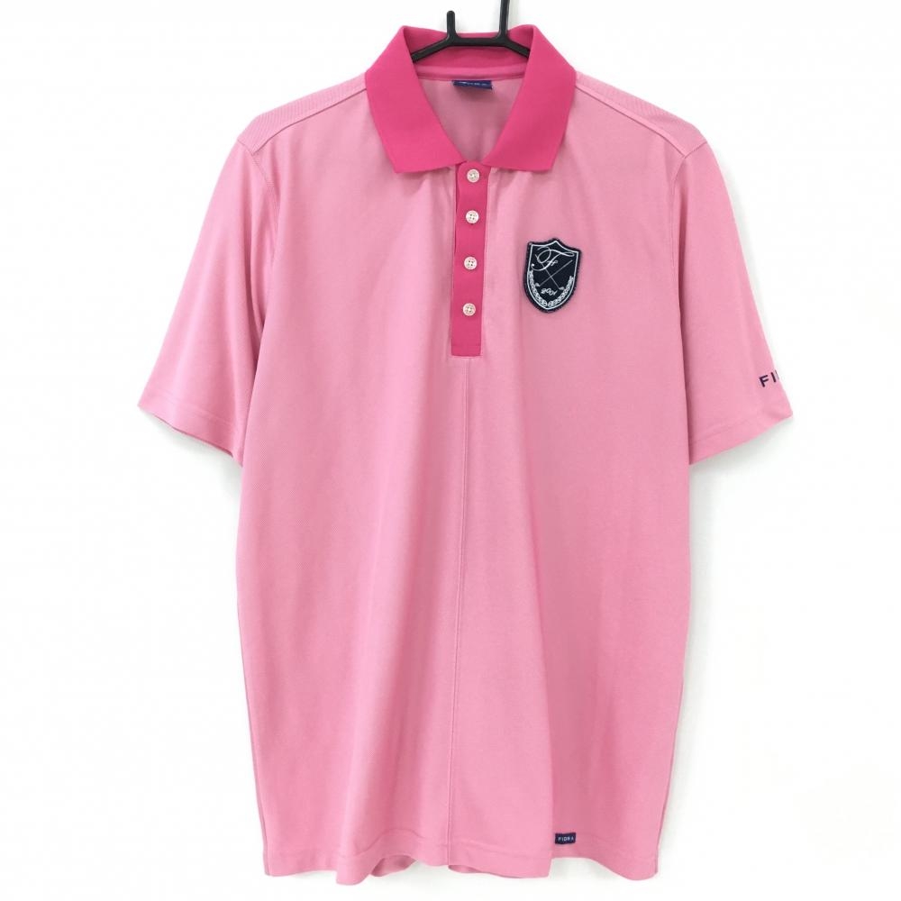フィドラ 半袖ポロシャツ ピンク×白 斜めストライプ 胸ワッペン 袖刺しゅう メンズ L/G ゴルフウェア FIDRA