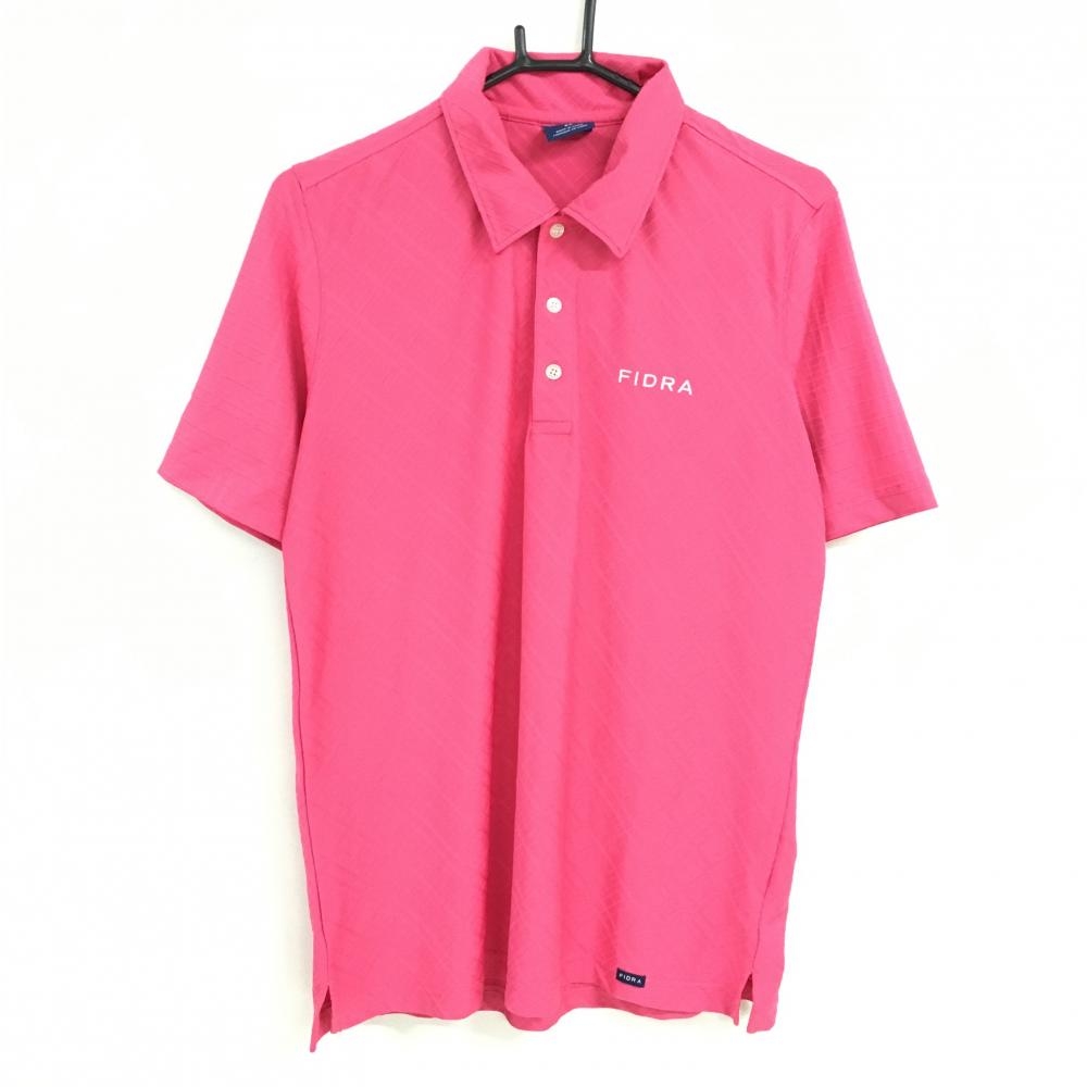 【超美品】フィドラ 半袖ポロシャツ ピンク チェック織生地 ロゴ刺しゅう メンズ S/P ゴルフウェア FIDRA