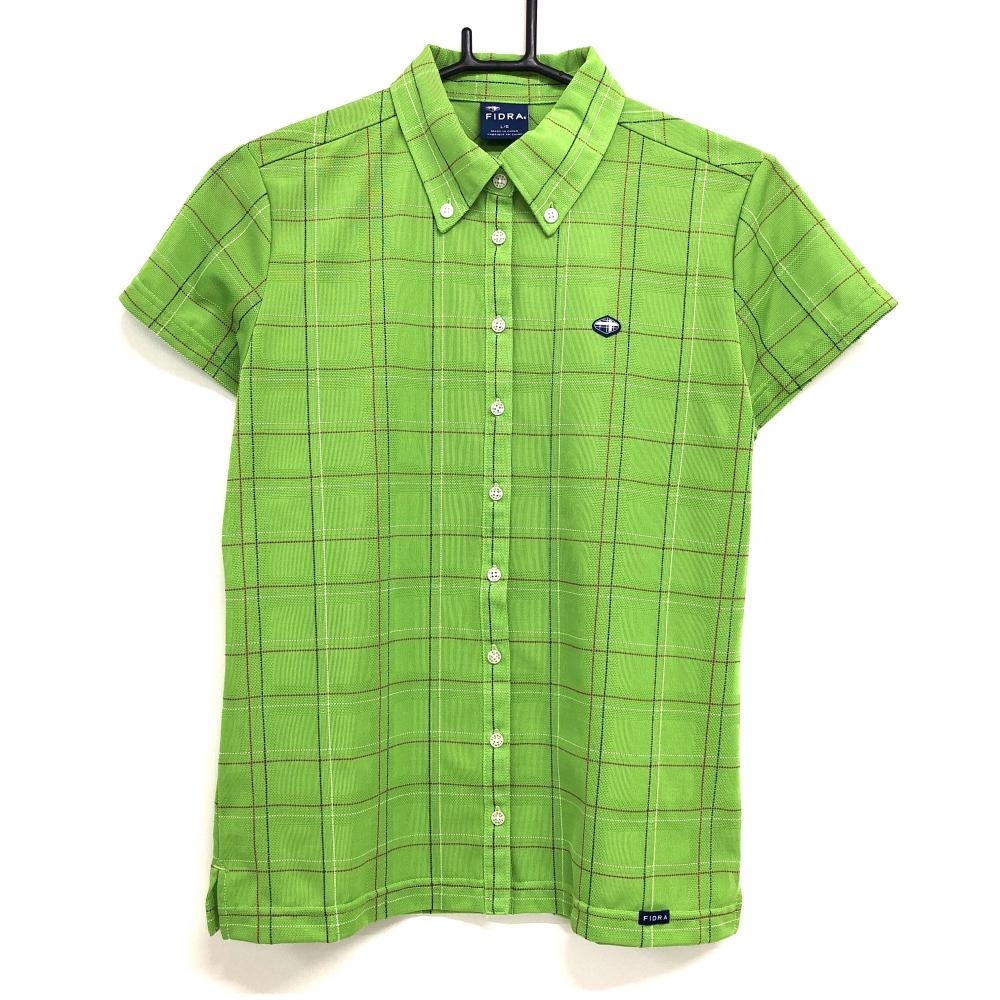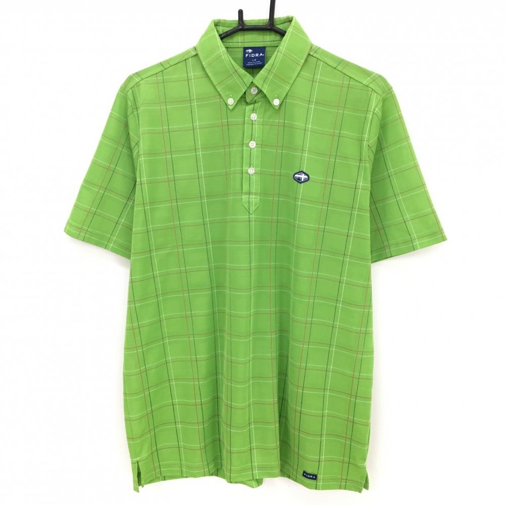 【超美品】フィドラ 半袖シャツ ライトグリーン×レッド チェック ボタンダウン メンズ L/G ゴルフウェア FIDRA