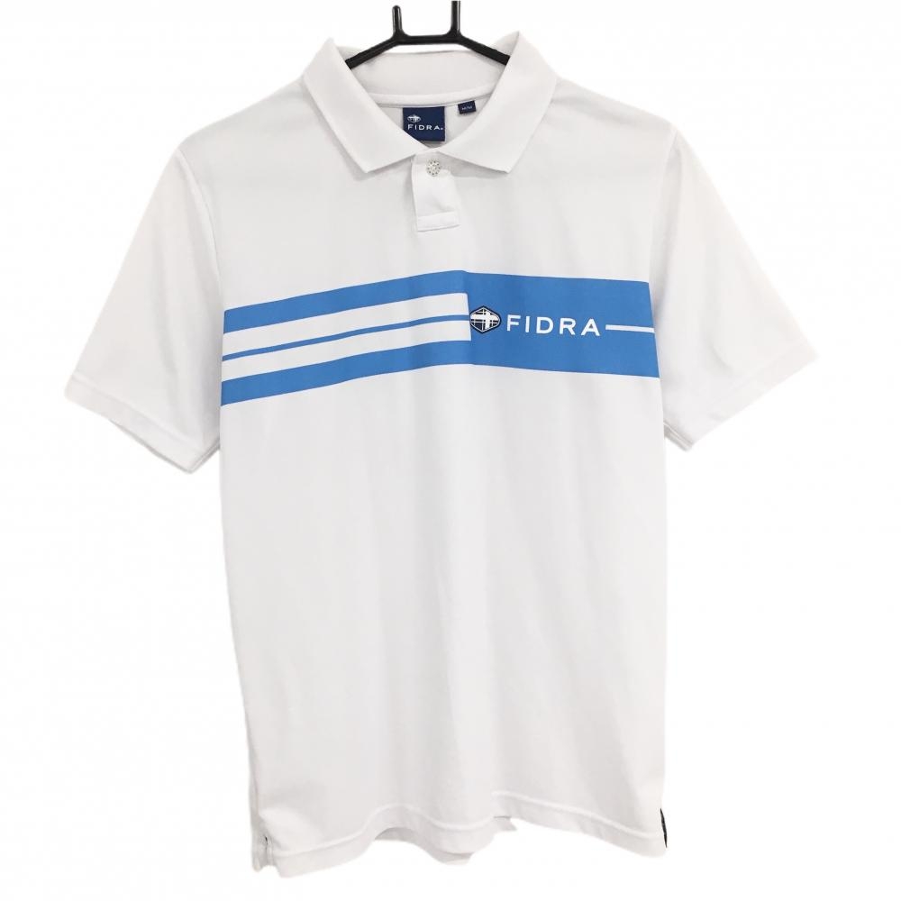 【美品】フィドラ 襟付き半袖シャツ 白×ライトブルー 胸元ライン レディース S/P ゴルフウェア FIDRA