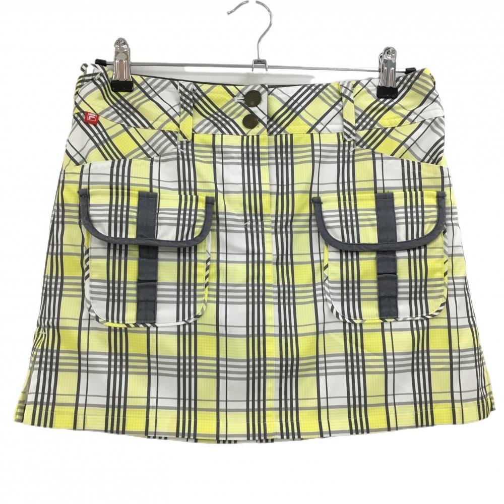 【美品】フィラゴルフ スカート グレー 格子柄地模様 ロゴ総柄 ウエストゴム レディース M ゴルフウェア FILA GOLF