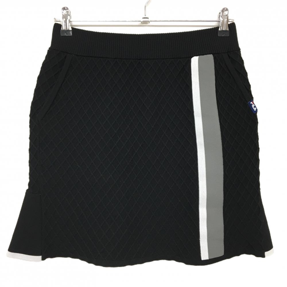 【超美品】フィラゴルフ スカート 黒 ロゴ総柄地模様 内側インナーパンツ レディース L ゴルフウェア FILA GOLF