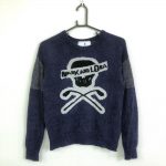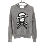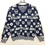 マークアンドロナ 長袖ニットセーター ネイビー×グレー スカル