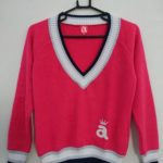 アルチビオ 長袖セーター ピンク×白×ダークネイビー Vネック