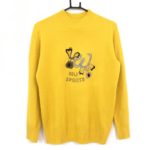 MUスポーツ 長袖ハイネックセーター マスタードイエロー×黒 犬プリント
