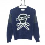 マークアンドロナ 長袖セーター ネイビー 凹凸スカル