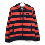 アディダス 長袖ジップアップパーカー レッド×ダークネイビー ボーダー