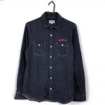 ジャックバニー 長袖シャツ ダークネイビー ソフトデニム調 ストレッチ