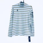 パーリーゲイツ 長袖ハイネックシャツ ライトブルー×イエロー ボーダー