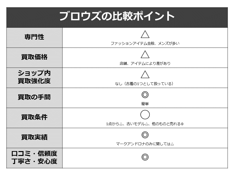 これまで、マークアンドロナを買取している 7社を紹介、検証してきました。