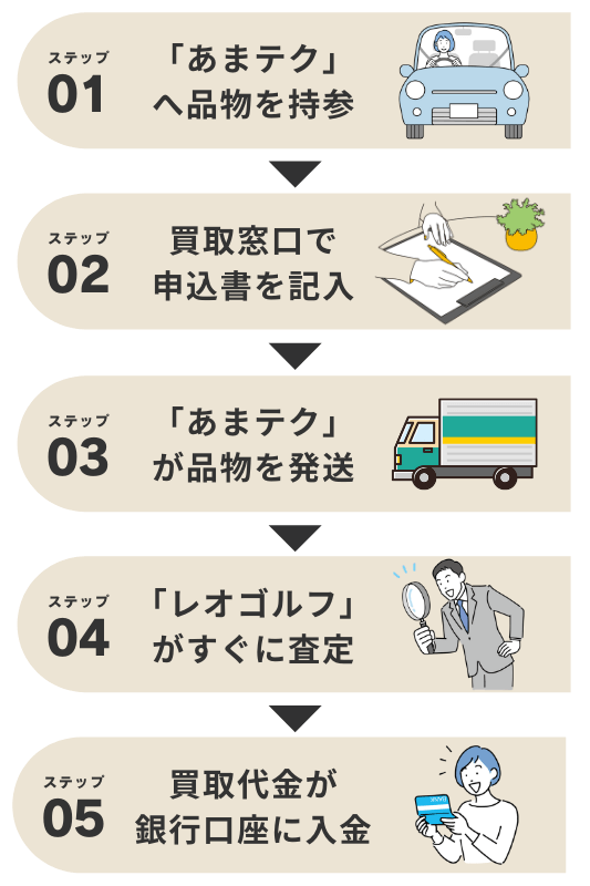レオゴルフは買取相談から入金確認まで丁寧にサポート。お客さまと気持ちよくお取引できるように、どこよりも親身な接客を心がけています。