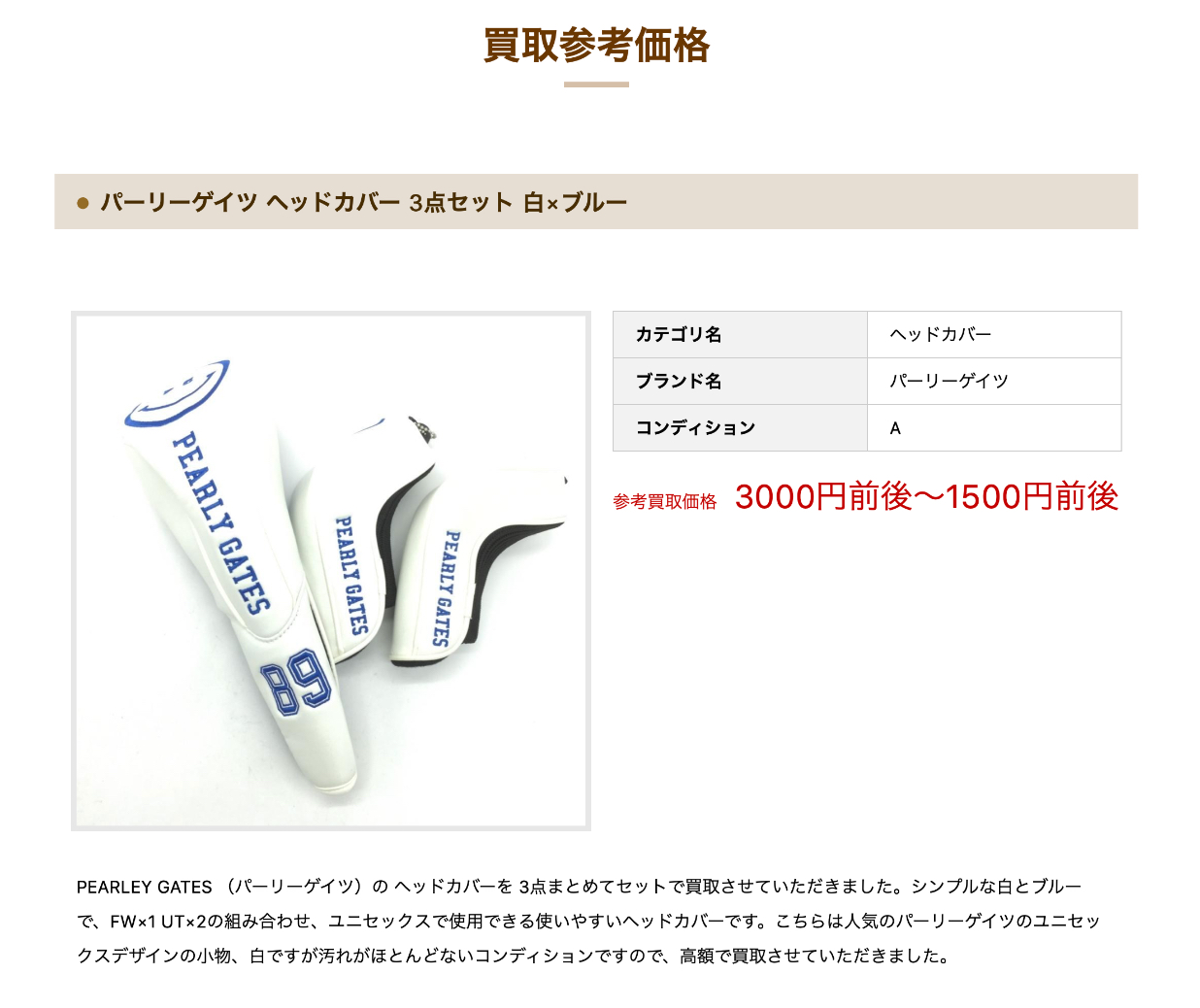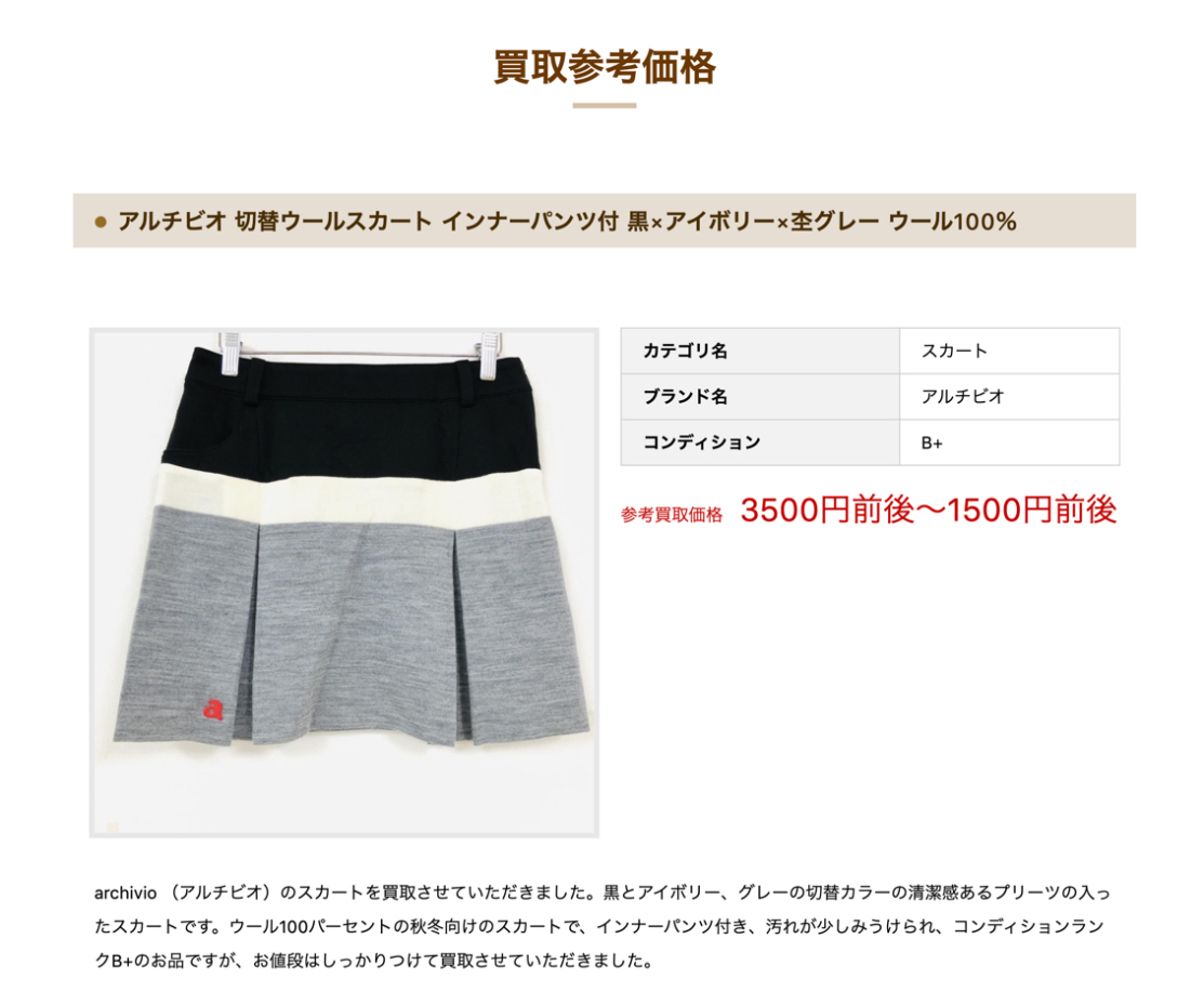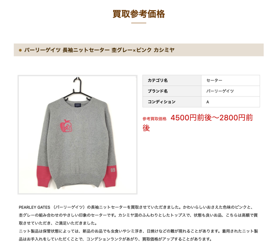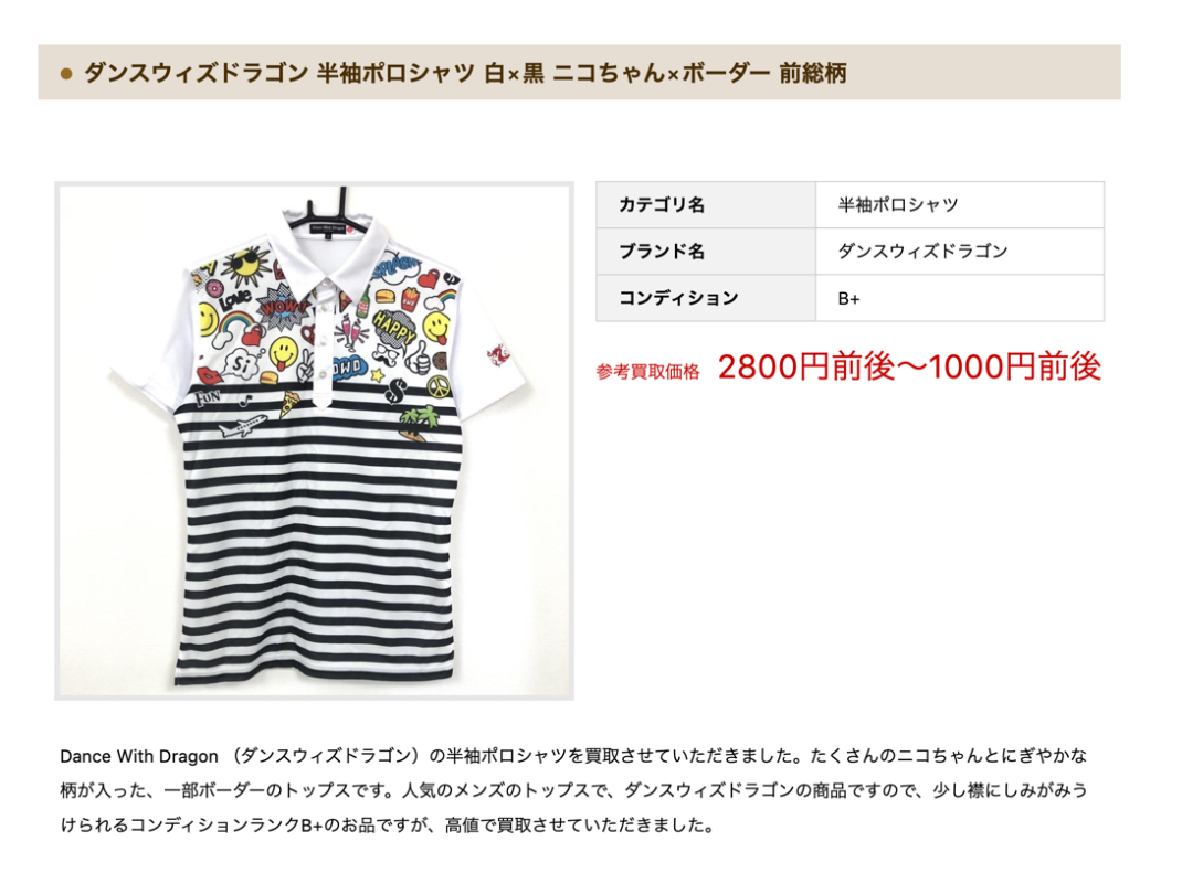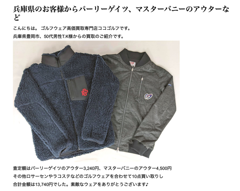 百聞は一見に如かず!ゴルフウェア買取専門店のWebサイトで紹介されている「買取実績価格」を見てみましょう。
