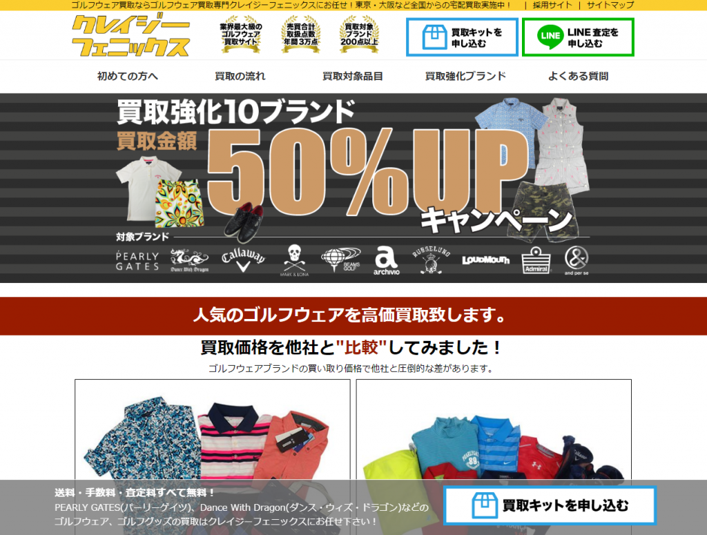 意外にもゴルフウェアをメインに買取しているのはレオゴルフ・クレイジーフェニックスの2社しかいませんでした。