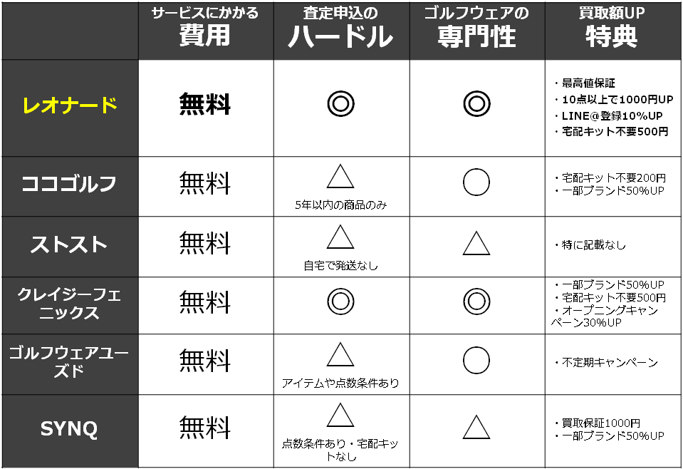 参照:中古ゴルフウェアの買取通販 比較・ランキング・口コミ決定版サイト