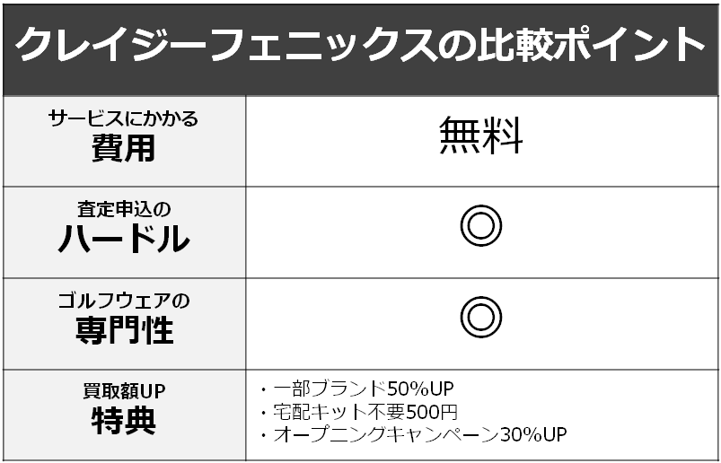 査定申込のハードルが低く簡単に買取してくれるのはレオゴルフ・ストスト・クレイジーフェニックスです。