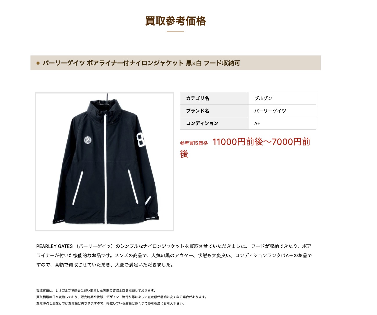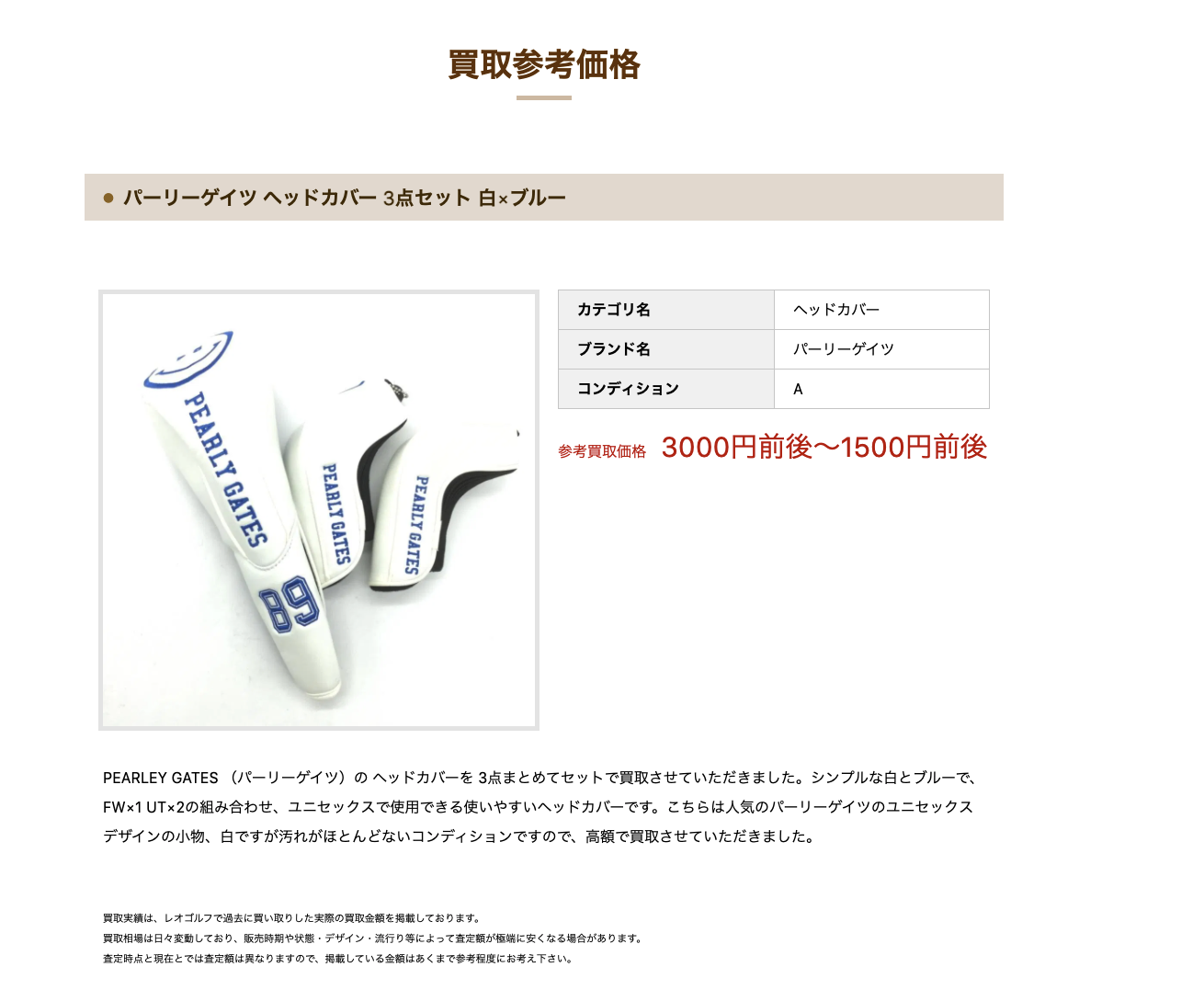 実際にレオゴルフでパーリーゲイツのゴルフウェアやグッズをどのくらいの値段で買い取ってもらえるのかみてみましょう。